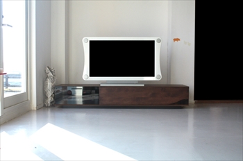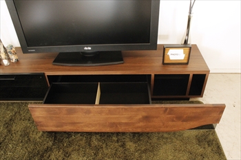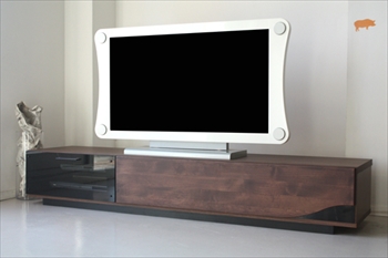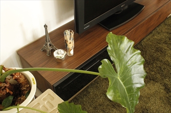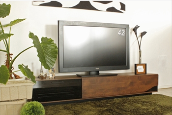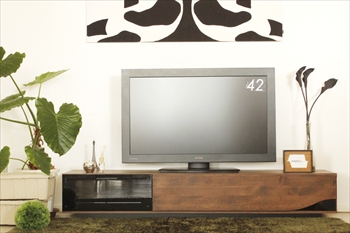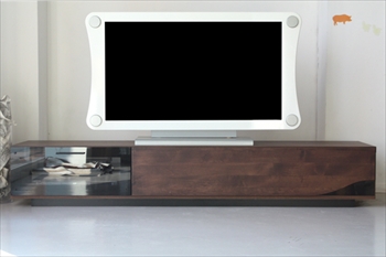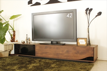 薄型テレビに対応した超ロータイプのボディに、天然木とガラスを組み合わせたワンポイントのあるデザインを採用。