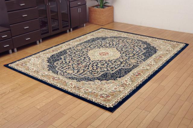 カーペット ラグ マット ウィルトン織り トルコ製 トルコ製 ウィルトン織り カーペット 『ベルミラ RUG』 ネイビー 約80×140cm(代引不可)【送料無料】