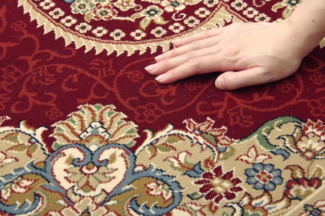ぎっしりとパイルが詰まっていますので弾力性に富み踏み心地もしっかりとしています。また、パイル数を多くすることにより、より繊細でより色鮮やかなメダリオン柄を表現しました。プリントものには出せない高級感・重厚感のある繊細な柄をお楽しみ下さい。本商品のパイル部分にはポリプロピレン素材を使用しております。ポリプロピレンはヘタリにくく、耐久性に優れ、繊維の中でも軽い素材です。また、汚れが付着しにくく、遊び毛や毛玉が非常に出にくいという特徴もあります。本商品にはヒートセット加工を施しております。ヒートセット加工をすることで、柔らかく、なめらかなタッチ感に仕上げました。ホットカーペットカバーや床暖房にも対応しております。安心して年間お使い頂けるカーペットです。※玄関などでご使用の際は、市販のスベリ止めシートなどの併用をおすすめします。