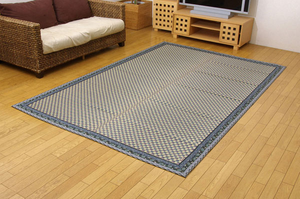 純国産 イ草花ござカーペット 『かれん』 ブルー 江戸間3畳(約174×261cm)【送料無料】【代引き不可】