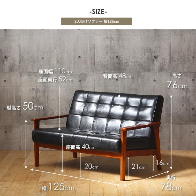 レザー調 肘掛け付きソファ 二人掛け 2人掛け レトロモダンソファ IW-72-2P【送料無料】