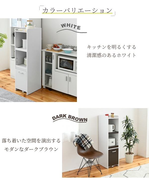 小さいながらも、スライドテーブルの2つついた家電収納に特化したタイプ。