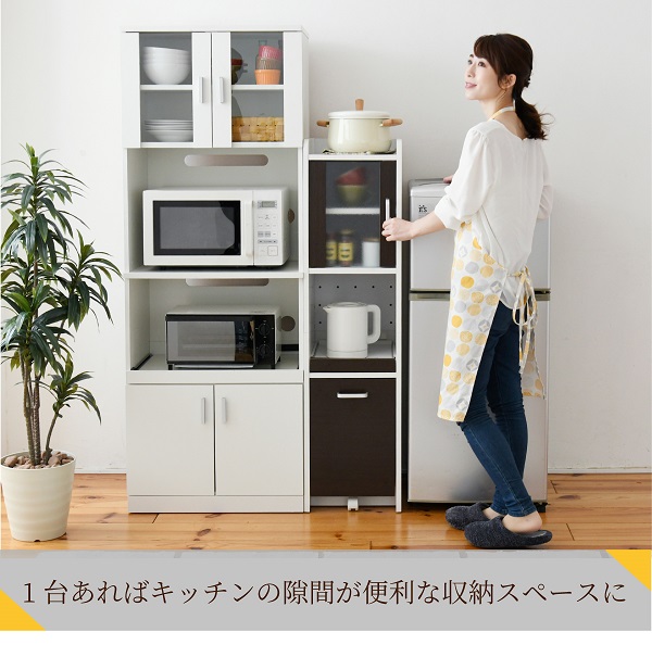 キッチン収納 隙間収納 リビング収納 コンパクト スライド 家電収納 隙間ミニキッチン H120 扉付き FKC-0645(代引不可)【送料無料】