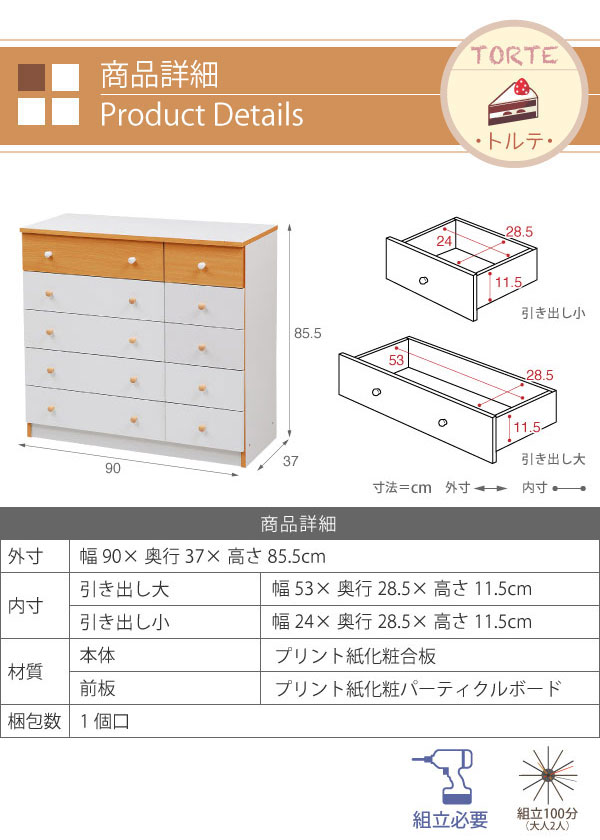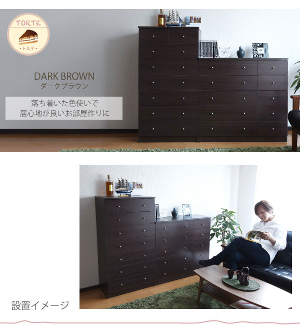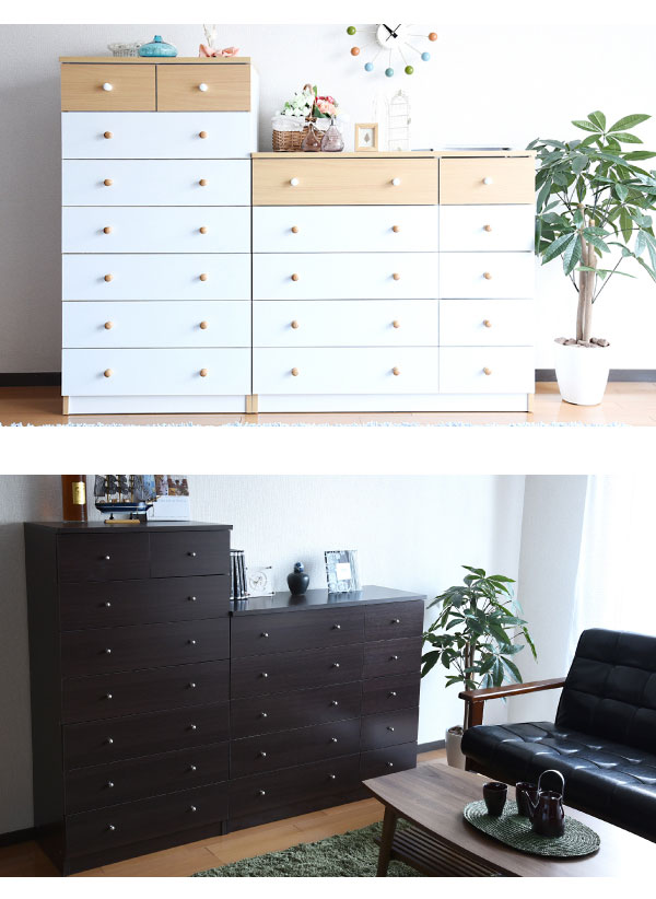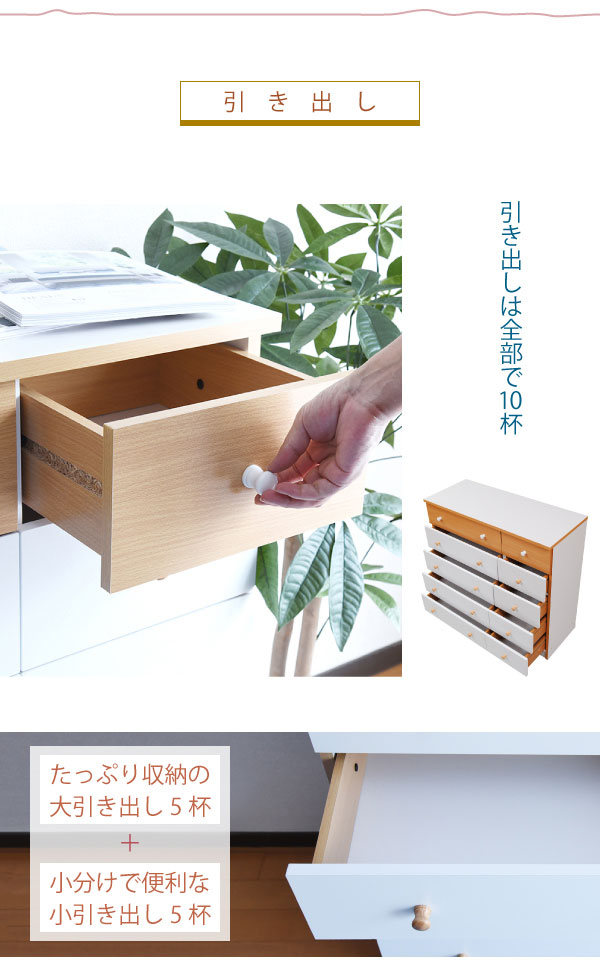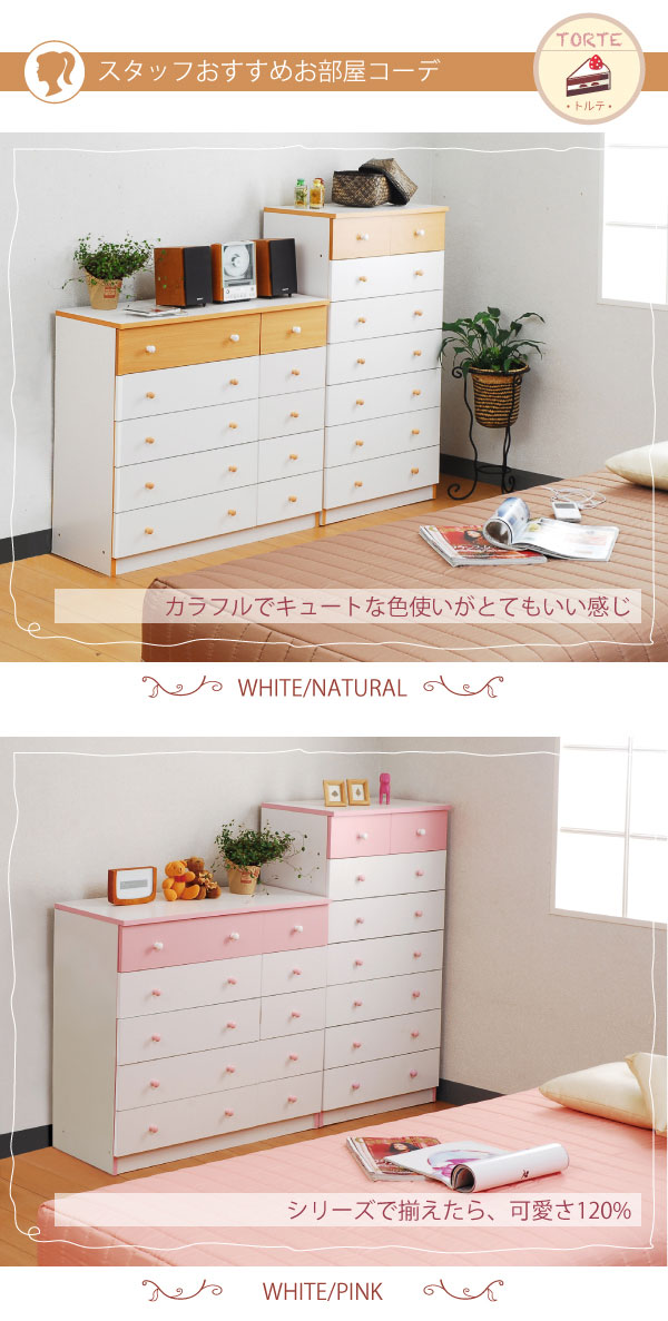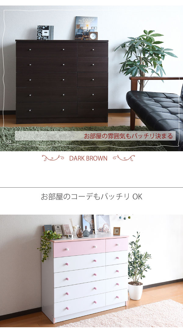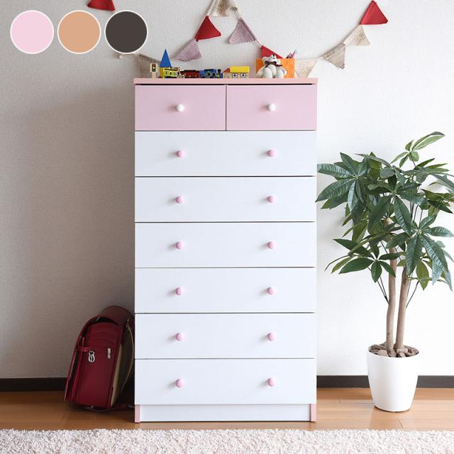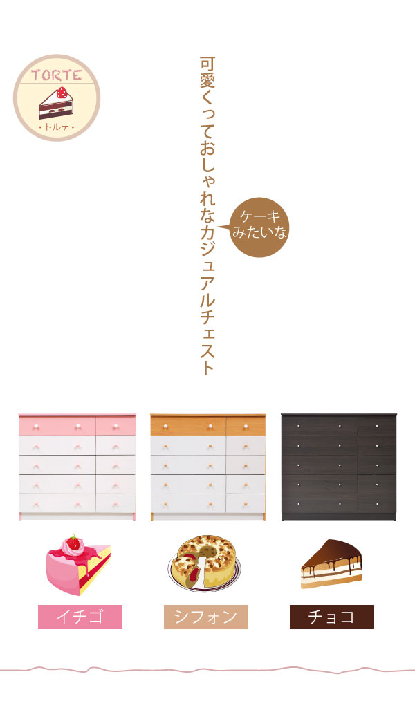 かわいいピンクとさわやかなナチュラル、シックなダークブラウンをご用意。お子様から大人まで幅広い世代にピッタリのシンプルなデザイン。引き出しには衣類から小物までたっぷり収納。