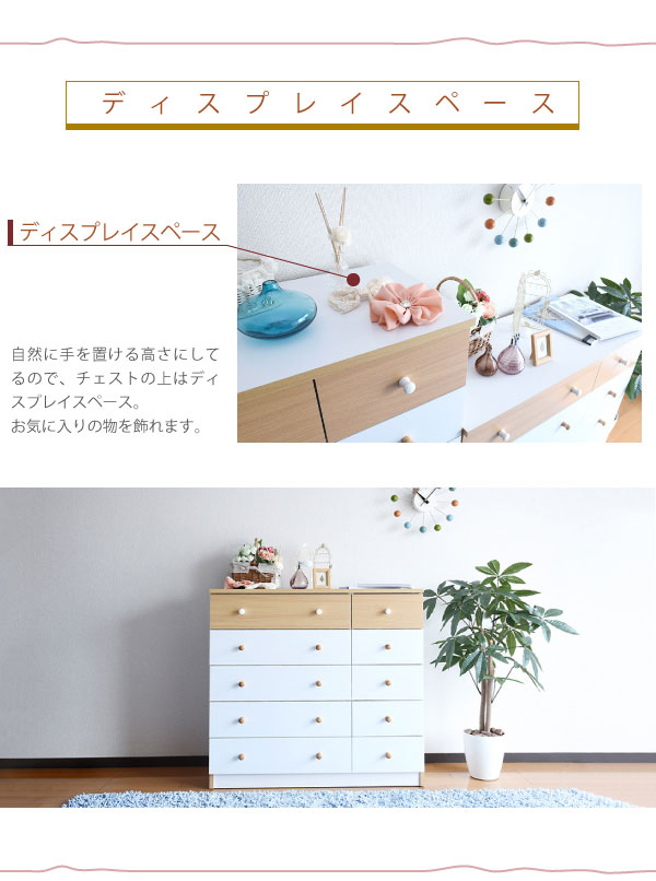 【送料無料】チェスト 5段 カジュアルワイドチェスト(fr-013) ホワイト/ピンク ホワイト/ナチュラル チェスト 引き出し インテリア 家具 収納 収納家具(代引き不可)