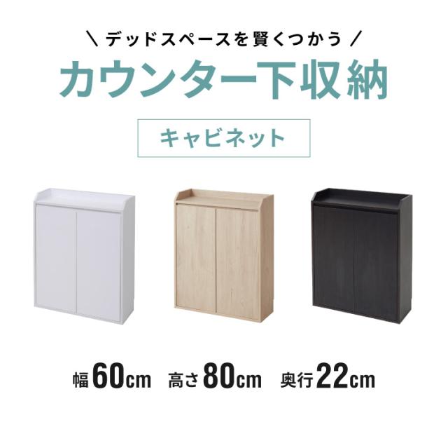 カウンター下収納 薄型 ミニ キャビネット 両扉 付き 幅60 奥行22 高さ80 カウンター下 リビングキャビネット シンプル キッチン下収納 リビングキャビネット(代引不可)【送料無料】