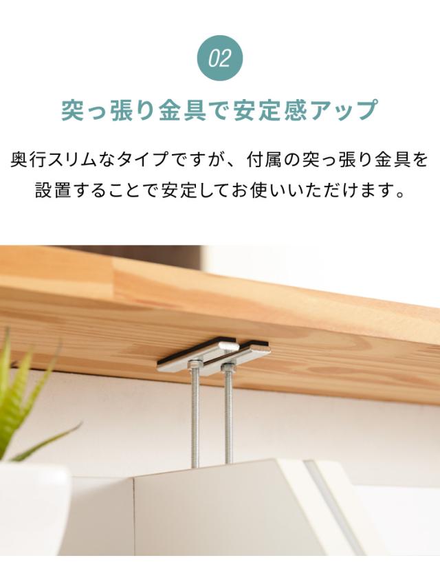 収納場所にこまる小物や雑貨のちょっとした収納が可能な扉付き収納。カウンター下使用時には、高さに合わせて2種類の突っ張り棒が付属されているのでしっかり固定可能で薄型でも前倒れの心配もありません。