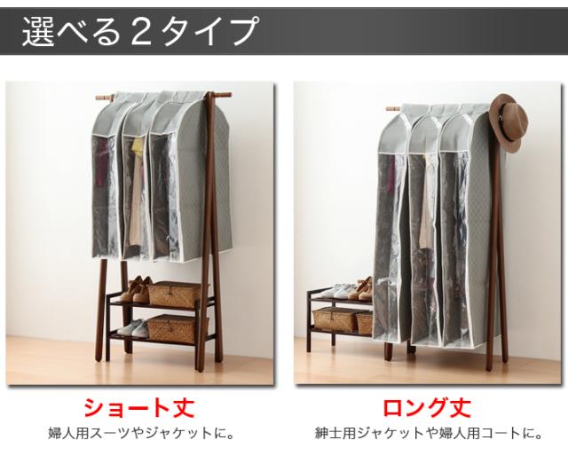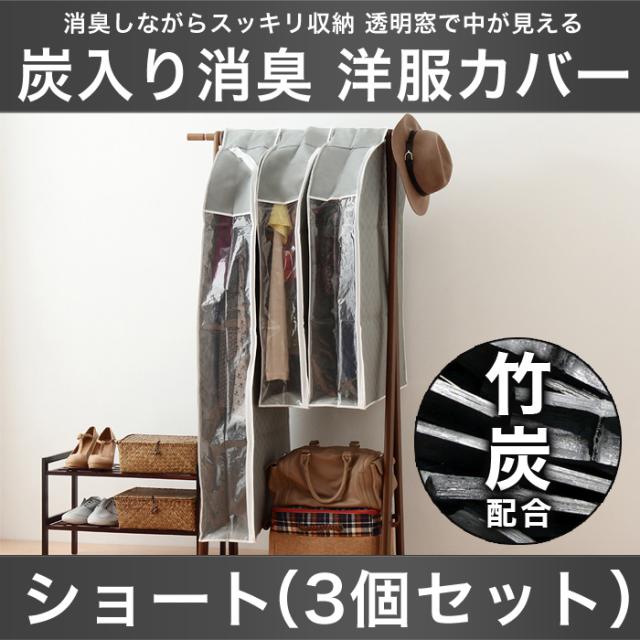 竹炭 衣類収納 洋服カバー パッと見える 炭入り消臭 衣類カバー ショート(3個セット)【送料無料】