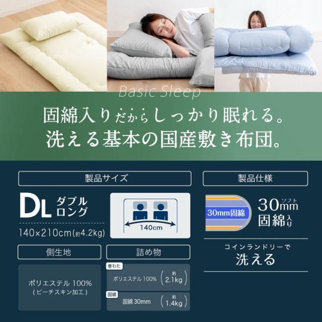 固綿入り 洗える 敷布団 ダブルロング 日本製 国産 敷き布団 敷布団 敷きふとん 敷ふとん ダブル ロング 布団 寝具 敷布団 ほこりが出にくい 清潔 敷布団(代引不可)【送料無料】