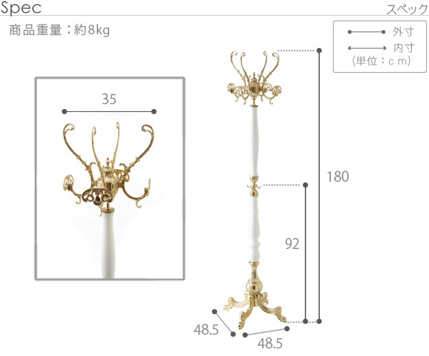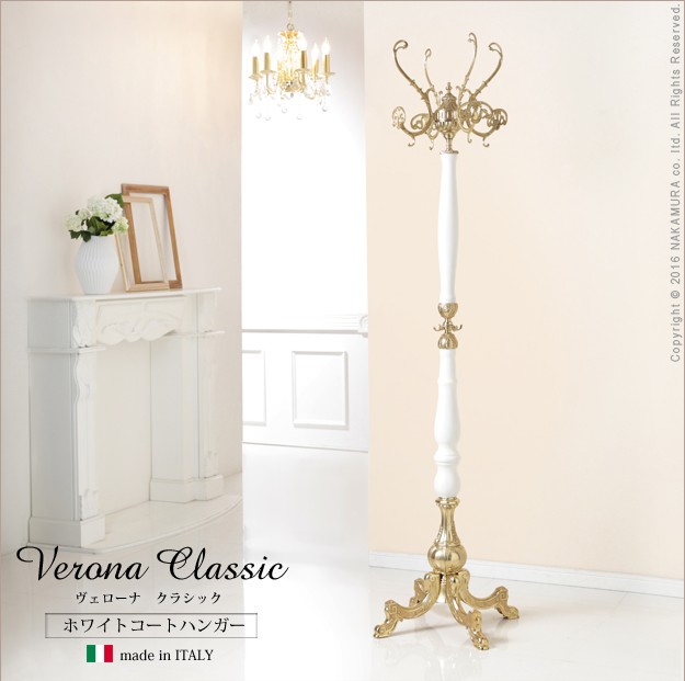 イタリア製 ヴェローナ クラシック コートハンガー 玄関 ポールハンガー ホワイト 白 玄関収納 ハンガースタンド ハンガーラック おしゃれ アンティーク(代引不可)【送料無料】