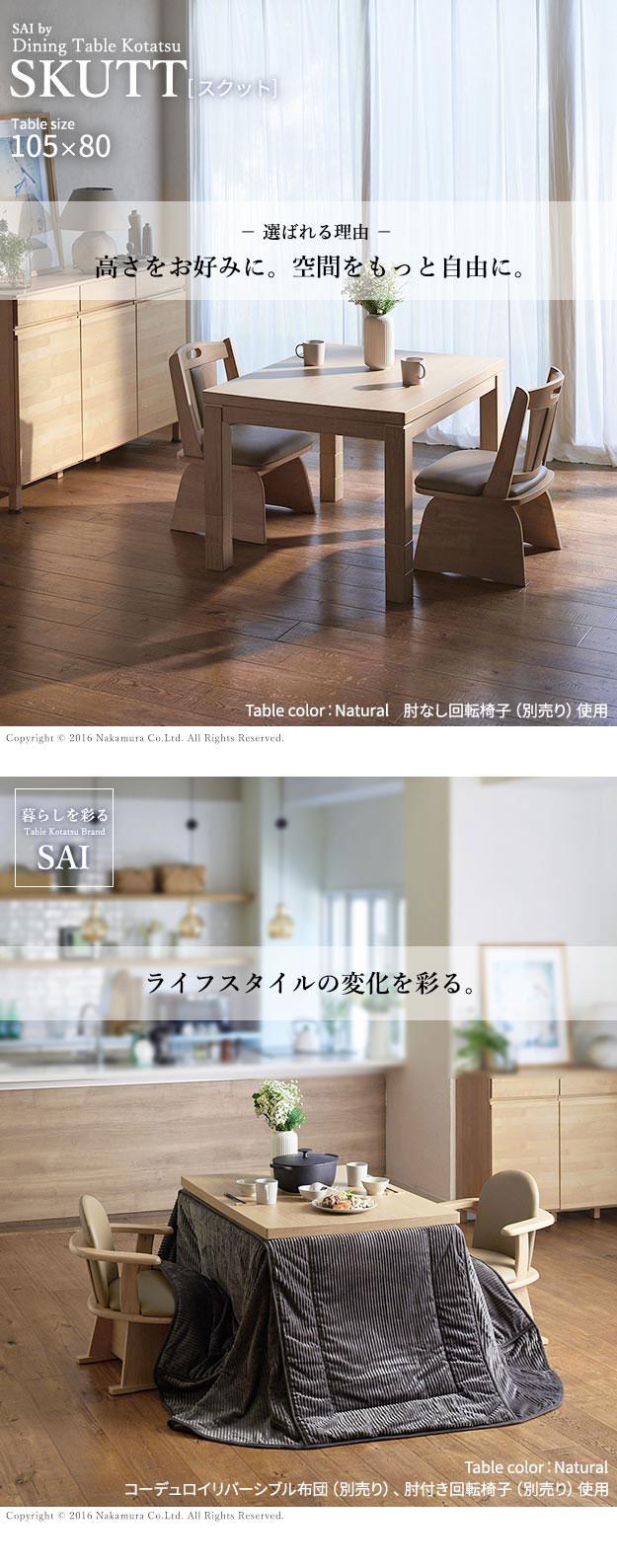 パワフルヒーター 6段階に高さ調節できるダイニングこたつ スクット 105x80cm こたつ本体のみ SAI 彩 ダイニングテーブル リビング コタツ 高さ調節 継ぎ脚(代引不可)【送料無料】