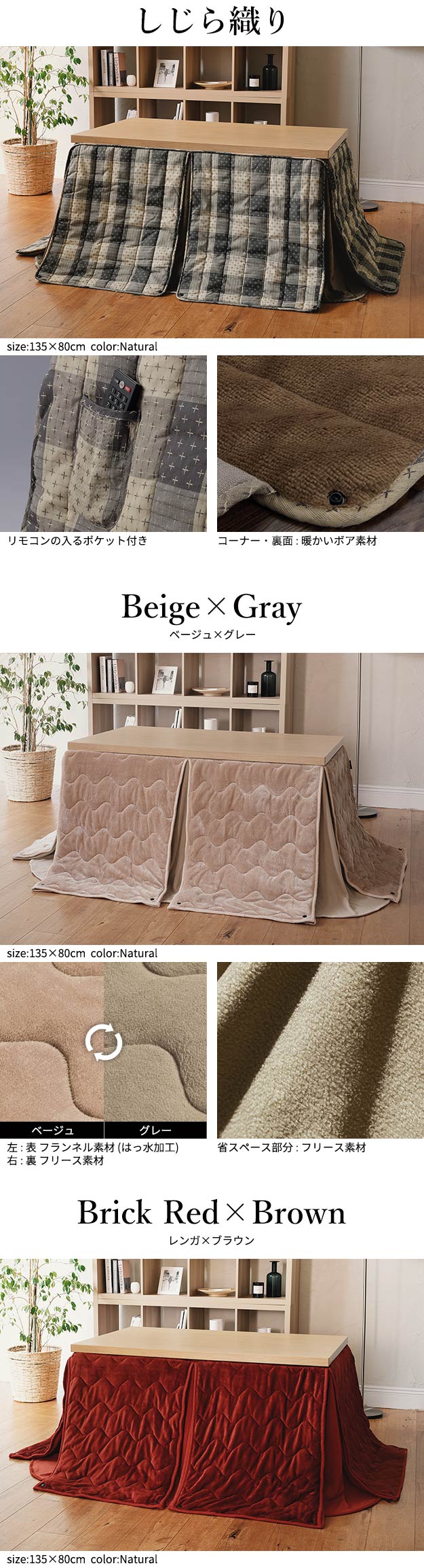 135×80cm 2点セット(こたつ本体+こたつ布団)