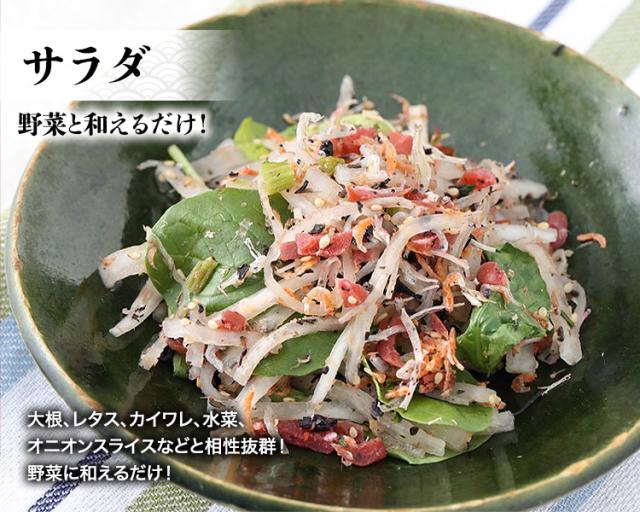 ふりかけ、お茶漬け、おにぎり、サラダ、チャーハン、パスタなど様々の料理にアレンジしてお召し上がりいただけます。