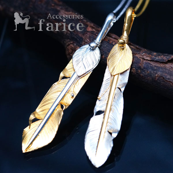 インディアンジュエリー ハートフェザー 羽 イエローゴールド メンズ シルバー925 ペンダント ネックレス【 銀軸 or 金軸 】
