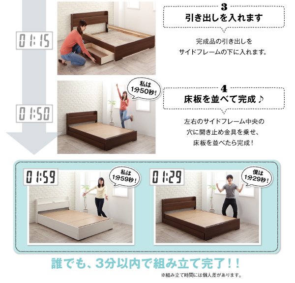 工具いらずの組み立て・分解簡単収納ベッドです。