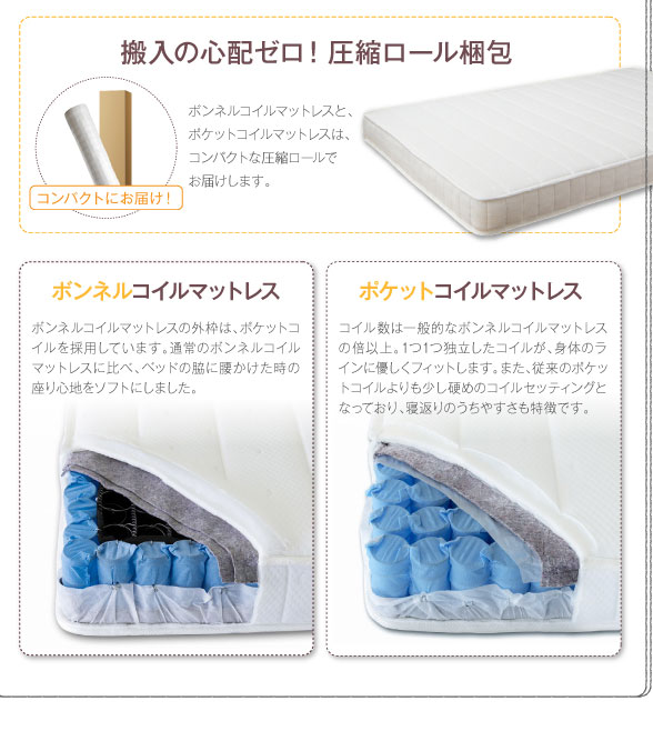 *付属のマットレスは圧縮ロール(ボンネルコイル)マットレスとなります。