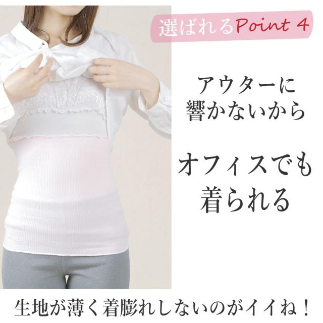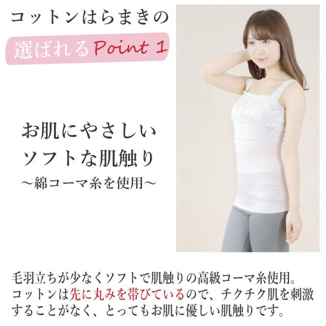 綿の持つほんのり自然な暖かさで、夏の冷房や冬の寒さからも優しくお腹を適温に保ちます。