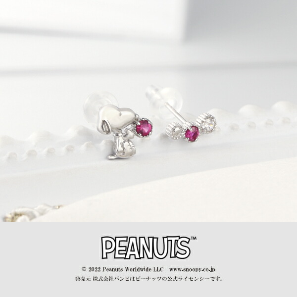 スヌーピー シンセティックルビー アシンメトリー スタッドピアス 2P 両耳用 シルバー925 公式 PEANUTS SNOOPY グッズ スヌーピージュエリー