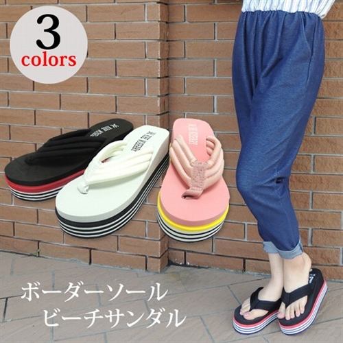 サンダル 【送料無料:沖縄・離島配送不可】ボーダービーチサンダル /厚底/ウェッジソール 3カラー