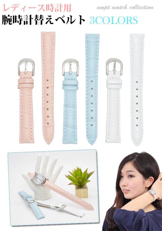 時計ベルト 腕時計 ベルト 時計 替えベルト バンド empt Ladys レディース ピンク ブルー ホワイト 桃 青 白 12mm 14mm 16mm | 本革 革ベルト 時計 替えベルト 変え ベルト 送料無料 腕時計 替えバンド ベルト 交換 工具 バネ棒外し