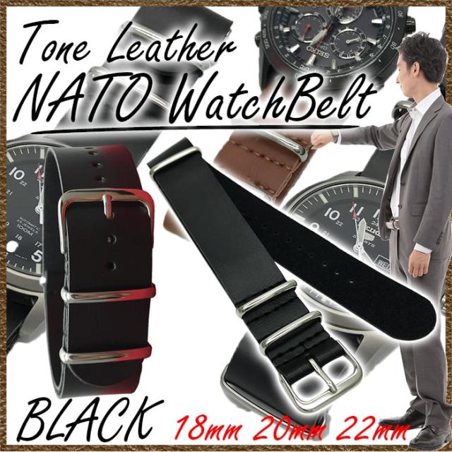 腕時計替えベルトNATOタイプ フェイクレザー ブラック 22mm NATO 革ベルト