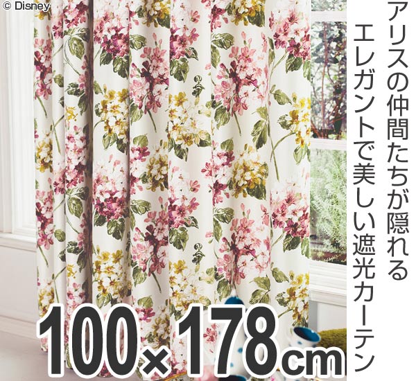 カーテン 遮光カーテン スミノエ アリス アジサイ 100×178cm アイボリー ( 遮光 ディズニー ドレープカーテン Disney ふしぎの国のアリス キャラクター 既製 遮光2級 洗える 形状記憶 花柄 フラワー 日本製 国産 )