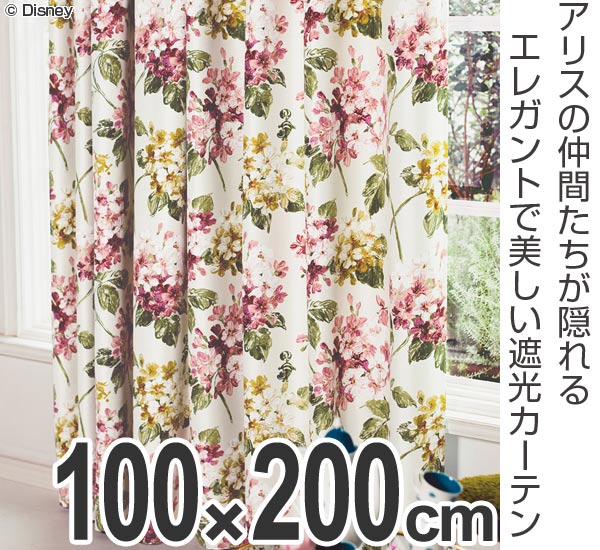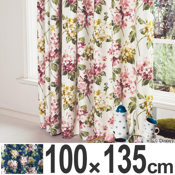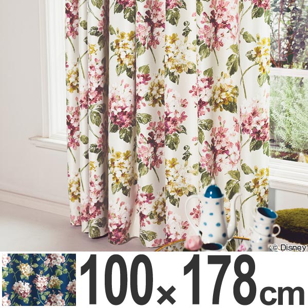 カーテン 遮光カーテン スミノエ アリス アジサイ 100×200cm アイボリー ( 遮光 ディズニー ドレープカーテン Disney ふしぎの国のアリス キャラクター 既製 遮光2級 洗える 形状記憶 花柄 フラワー 日本製 国産 )