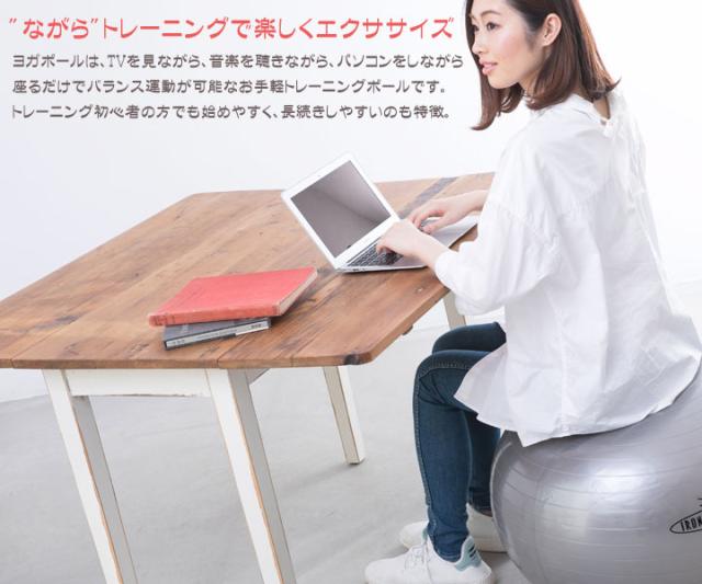 ご家庭でらくらくシェイプアップ!ボールの弾みと転がりを利用したエクササイズボール。簡単なバランス運動から高度な体勢まで。テレビを見ながら、仕事をしながら、ながら運動で体幹トレーニング。体力に自信のない女性の方でも手軽に始められるヨガボールトレーニングです。