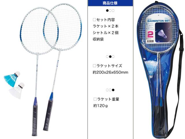 セット内容/ラケット×2個・シャトル×2個・収納ケース