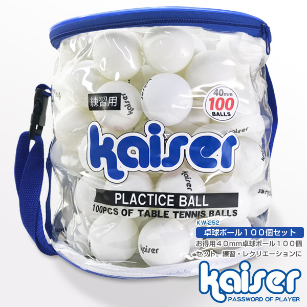 卓球ボール ホワイト 100個セット/kaiser(カイザー)/KW-252/卓球ボール ピンポン玉 セット 卓球用品 まとめ買い 激安 公式サイズ