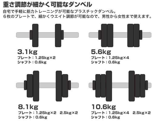 プラスチックダンベル 10kg 2個セット