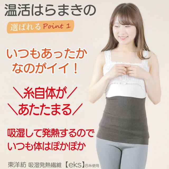 気体の水分を取り込んであたたかくなる糸を使い、ムレ感の少ないいつも快適な暖かさとちょうどいい湿度を保つ【温活はらまき】