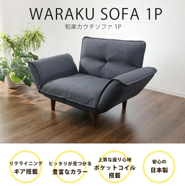 1人用 カウチソファ 日本製 リクライニング ソファー ソファ 1人掛け 1人用 合成皮革 和楽 1p 和楽ソファ ファブリック 椅子 いす イス インテリア ローソファー ローソファ カウチ ポケットコ