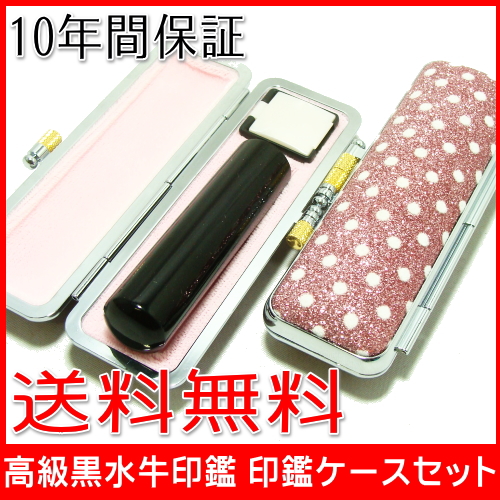 | 黒水牛印鑑 きらめきラメ水玉印鑑ケース付(ピンク)【送料無料】 |