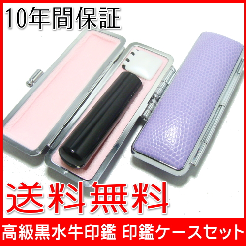 【送料無料】 印鑑・はんこ/黒水牛印鑑/【12.0mm】サニートカゲ印鑑ケース(パープル)付実印|銀行印|認印|個人印鑑|ハンコ|就職祝い|祝