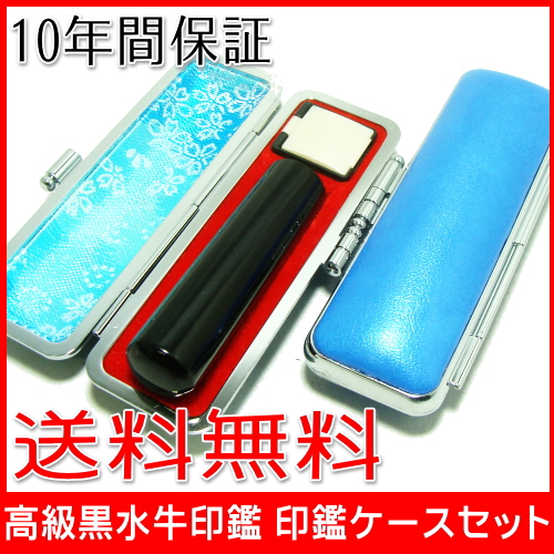 【送料無料】 印鑑・はんこ/黒水牛印鑑/【12.0mm】パステルカラー印鑑ケース(ブルー)付実印|銀行印|認印|個人印鑑|ハンコ|就職