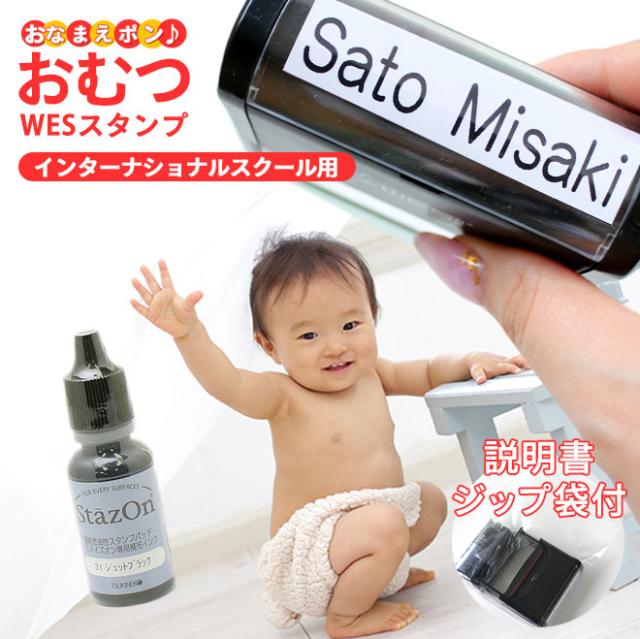 おむつ用スタンプゴム印 インターナショナル用 補充インク付 サイズ:60mm×15mm お名前スタンプ オムツスタンプ おむつ オムツ おなまえ
