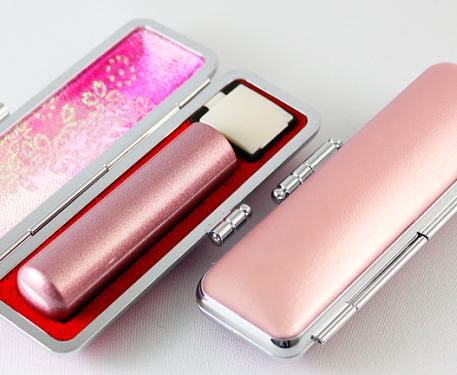 【送料無料】 印鑑・はんこ/実印/銀行印/メタリックピンク カラー天然本水牛 サイズ【15.0mm】パステルケース付(ピンク )個人印鑑 ハ