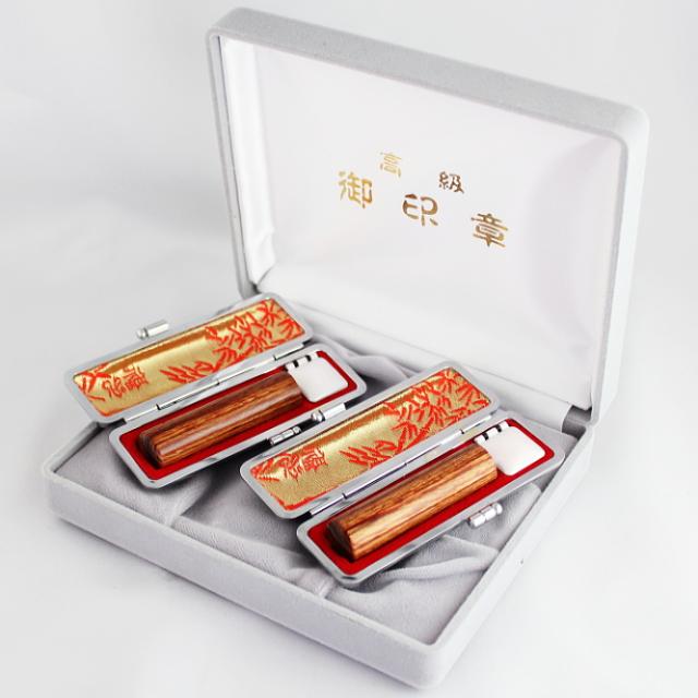 | 彩樺印鑑2本セット 化粧箱/もみ革印鑑ケース付(朱竹珍) |