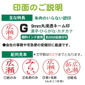 印面サイズ:9mm丸浸透印ネーム印「楷書体」