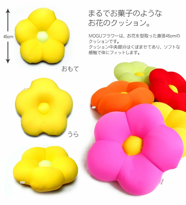 MOGU フラワークッション ビーズクッション パウダービーズ 直径45cm 日本製 在宅勤務 リモートワーク 昼寝 背あて ひざ置き 座布団 シートクッション 枕 抱き枕 抱きクッション プレゼント ギフト かわいい カラフル モグ (代引不可)