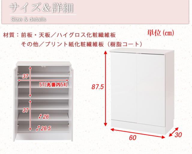 ■商品サイズ/本体:(約)幅60×奥行30×高さ87.5cm、扉内寸:(約)幅57(兆番内54)×奥行26×高さ37(固定棚挟み上下共通)cm