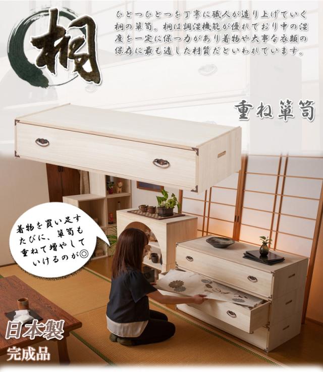 日本製 完成品 桐重ね箪笥 幅100 奥行44 1段 桐たんす 桐チェスト クローゼット 押入れ収納 桐収納 和たんす 桐の衣装ケース 引き出し(代引不可)【送料無料】