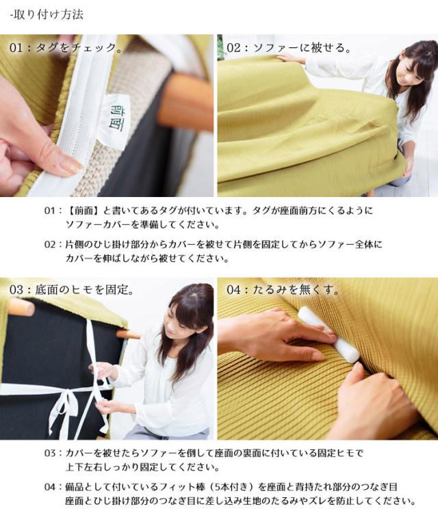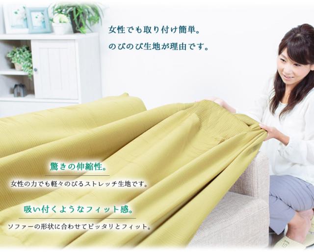 ソファーにカバーをかけるだけで、あっという間にソファーを衣替え!