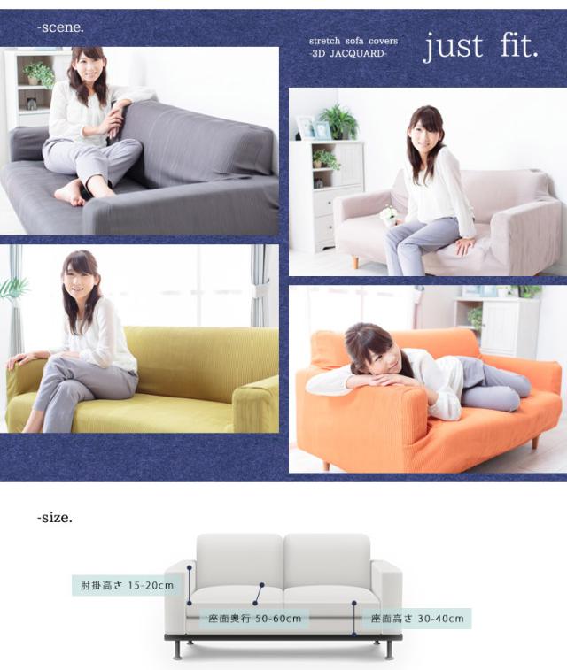 | のびのび フィットタイプ・ストレッチ ソファーカバー 3Dジャガード | ||