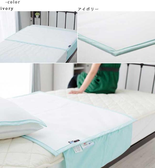 ズレ防止の羽が両サイドに付いています。敷布団やマットレスなどの下に挟み込んでご使用ください。