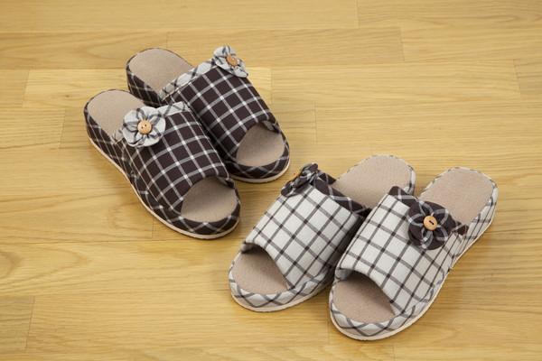 | 幅広ヒールアップあったかスリッパチェック2色組 |