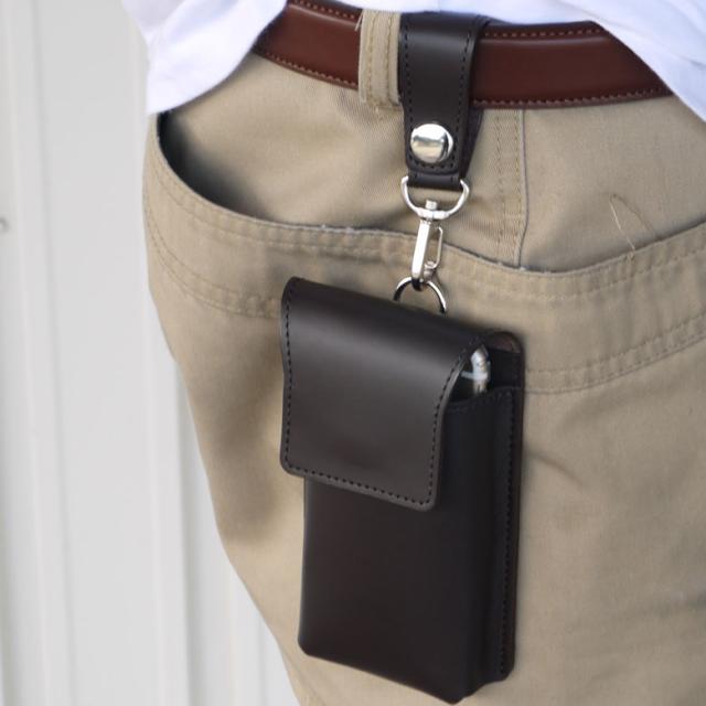 スマホポーチ メンズ 革 本革 iPhone7ポーチ スマートフォンポーチ ベルト ベルトポーチ スマートフォンケース カラビナ スマホ 縦型 ブラック 黒 チョコ ブラウン 日本製 2way スマートフォンポーチ