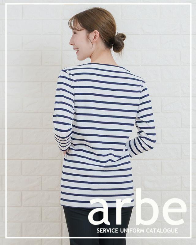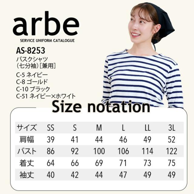 バスクシャツ 七分袖シャツ arbe アルベ AS-8253 【男女兼用】飲食店 サービス業 厨房 制服 レストラン ユニフォーム レディース メンズ ボーダー ポートネック