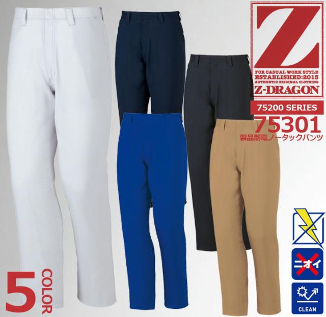 Z-DRAGON ノータックパンツ 75301 製品制電 スラックス【春夏】 作業服 作業着 自重堂 75300シリーズ